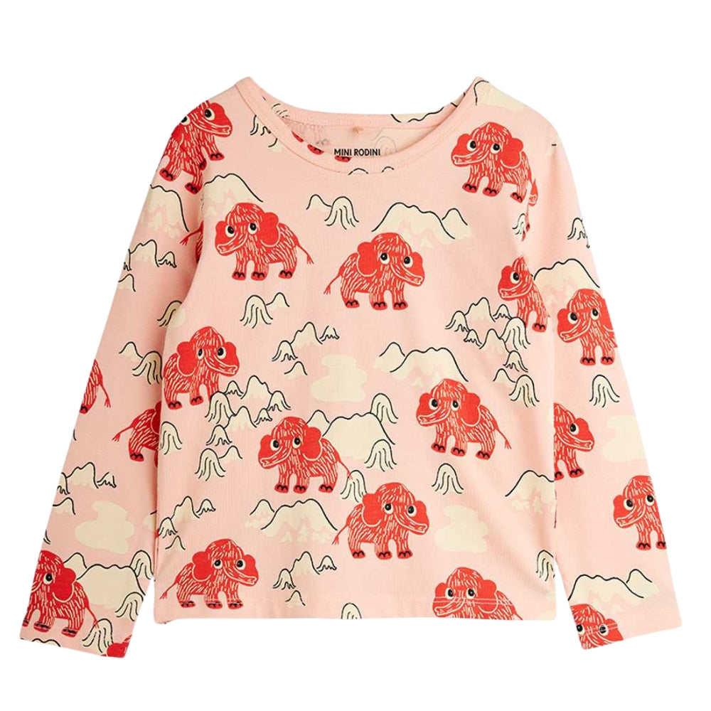 La t-shirt a maniche lunghe per bambini Mammut di Mini Rodini unisce comfort, qualità e design gioioso.