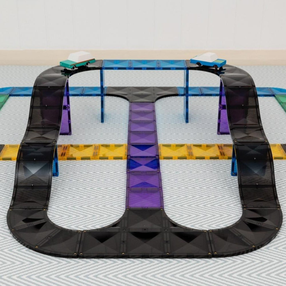 Questo set è compatibile con l'intera gamma Connetix ed è l'estensione perfetta del set Roads da 48 pezzi e dei set rettangolari per far crescere la collezione e creare infinite possibilità di progettazione.