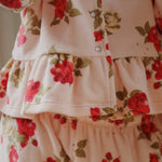 Il cardigan da bambina Konges Slojd è un morbido maglione in velluto con una graziosa baschina e si chiude sul davanti con pratici bottoni a pressione.