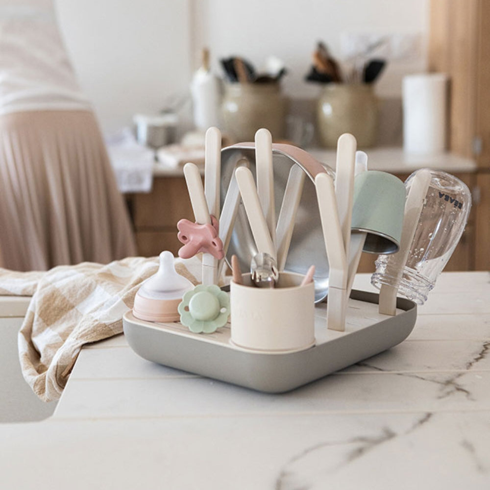 L'asciugapiatti di Beaba è una soluzione pratica ed esteticamente gradevole che facilita l'asciugatura quotidiana di biberon, accessori per la pappa e piccole stoviglie.