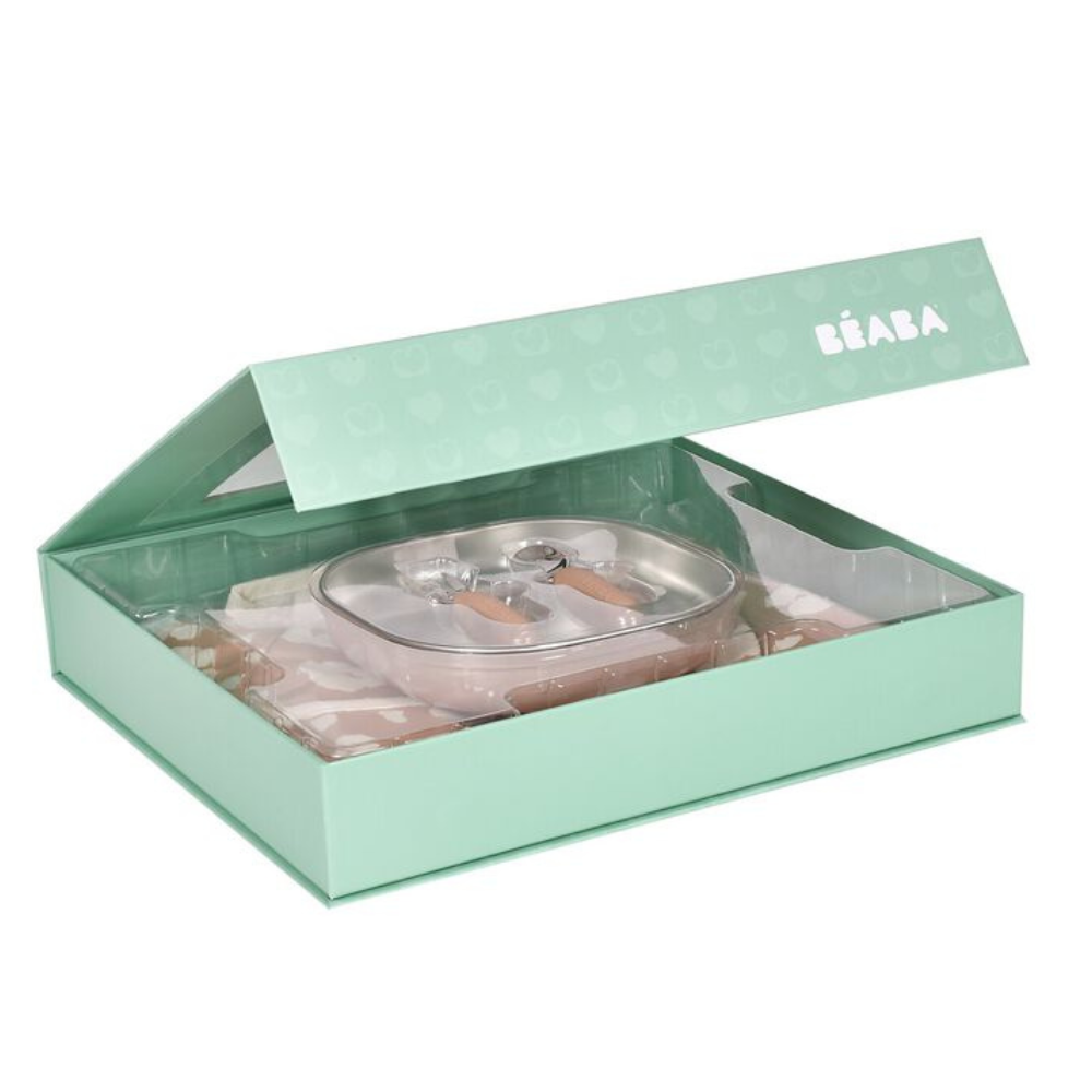 Il set regalo, splendidamente confezionato, sarà pronto da regalare subito dopo l'acquisto e il design accurato di Beaba renderà più semplici i pasti quotidiani e i momenti passati insieme a tavola.