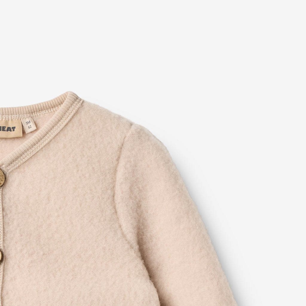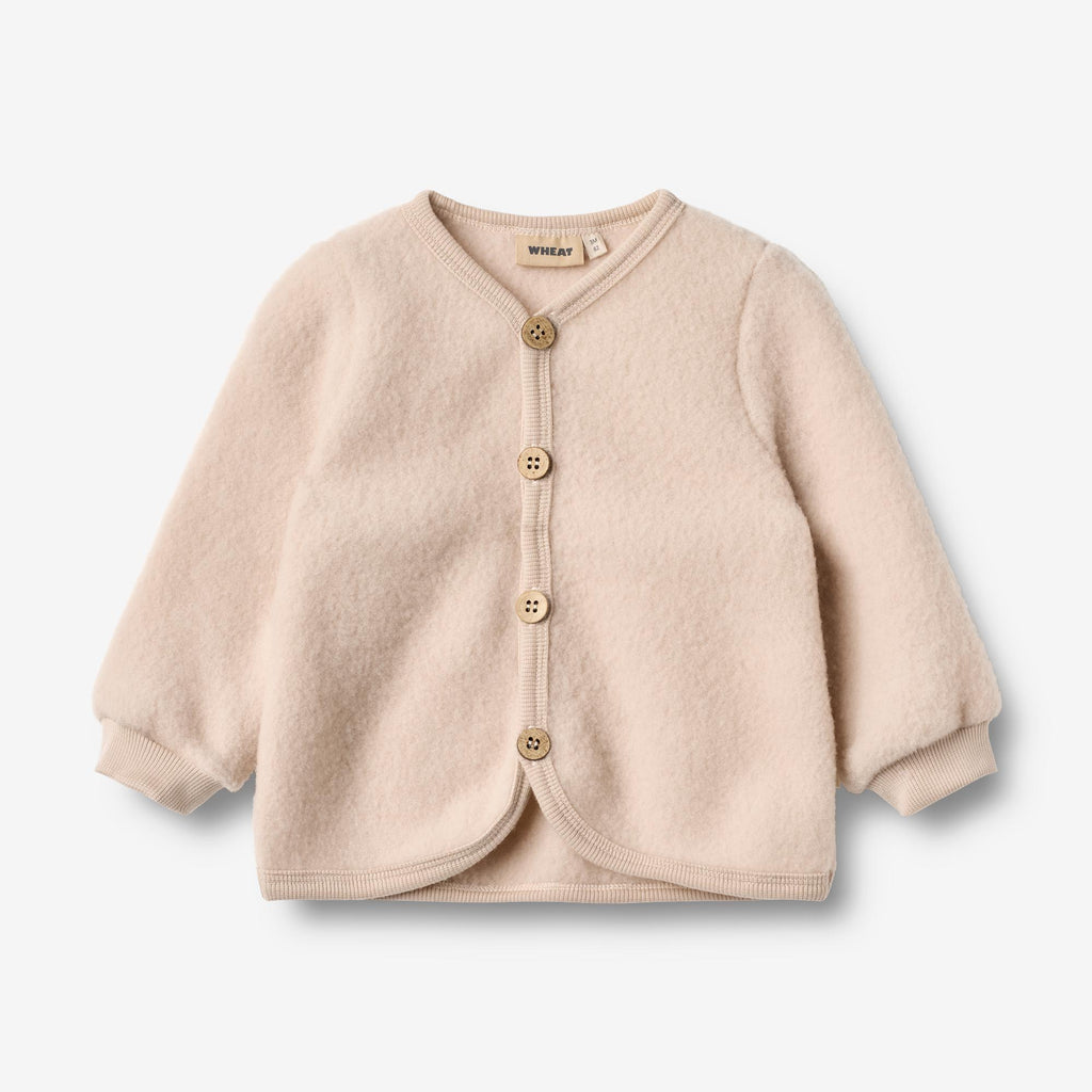 Le proprietà naturali della lana fanno sì che l'abbigliamento Wheat aiuti a regolare la temperatura corporea del bambino, per cui il cardigan da bambina è perfetto per essere indossato a strati.