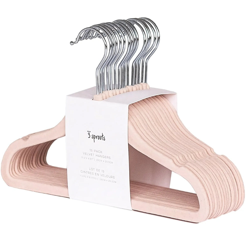 Le grucce per bambini 3 Sprouts hanno una finitura in velluto antiscivolo per evitare che i vestiti scivolino via.