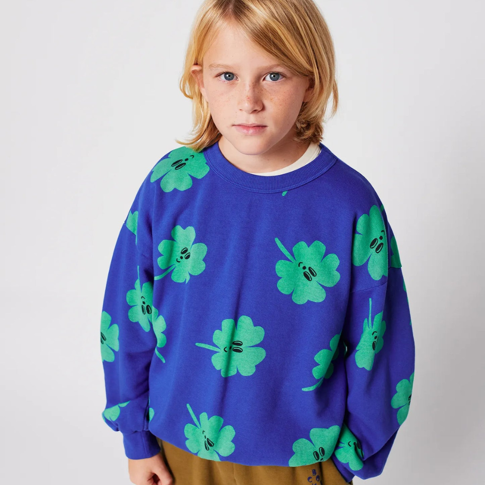 Felpa da bambino Lucky Clover all over Blue di Bobo Choses.