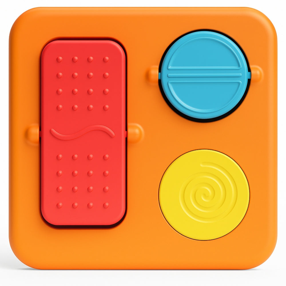 Il quadrato sensoriale Fat Brain Toys della gamma PlayTab è un ottimo modo per giocare in modo coinvolgente, sviluppando la motricità fine e incoraggiando il bambino a esplorare il funzionamento di interruttori e pulsanti.