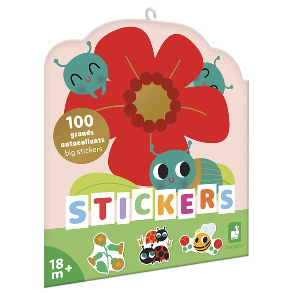 Janod Adesivi grandi per bambini su fogli Animali in giardino 100pz