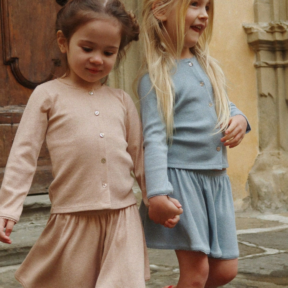 Il modello Roli è stato progettato pensando allo stile di tutti i giorni: il tessuto morbido ed elastico garantisce libertà di movimento, mentre i bordi decorativi aggiungono un tocco femminile. Grazie all'inclusione di particelle di lurex, la gonna da ragazza brilla delicatamente alla luce, creando un look elegante da indossare tutti i giorni.