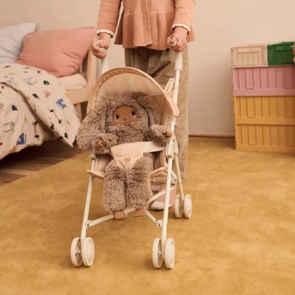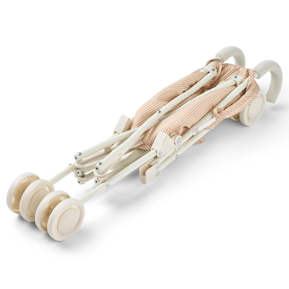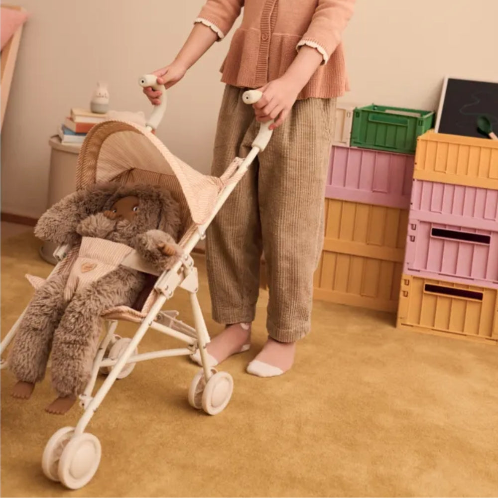 Le quattro ruote doppie garantiscono una manovrabilità fluida, mentre la cappottina parasole e la morbida seduta in poliestere riciclato sono caratteristiche aggiuntive che rendono questa carrozzina per bambole Liewood quasi simile a quella vera.