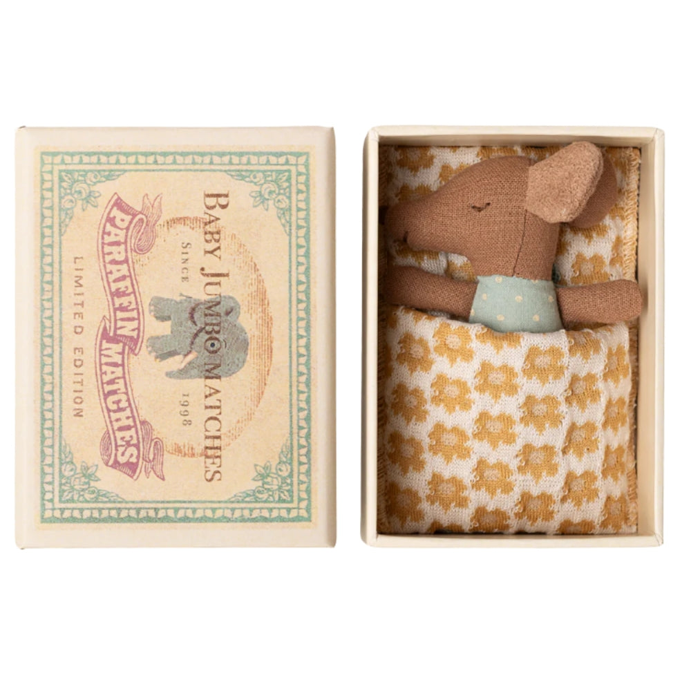 Maileg Topolino addormentato in una scatola di fiammiferi Blu