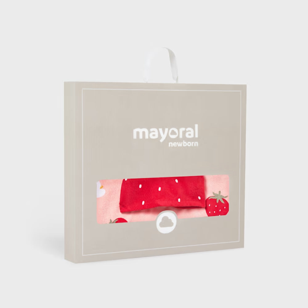 Il modello Mayoral si distingue per il colore rosso intenso e il motivo di fragole e fiorellini.