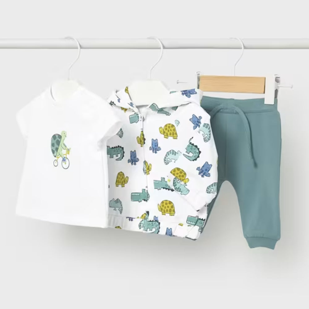 Questo set da bambino di Mayoral è composto da tre pezzi che assicurano comfort e stile fin dai primi giorni di vita.