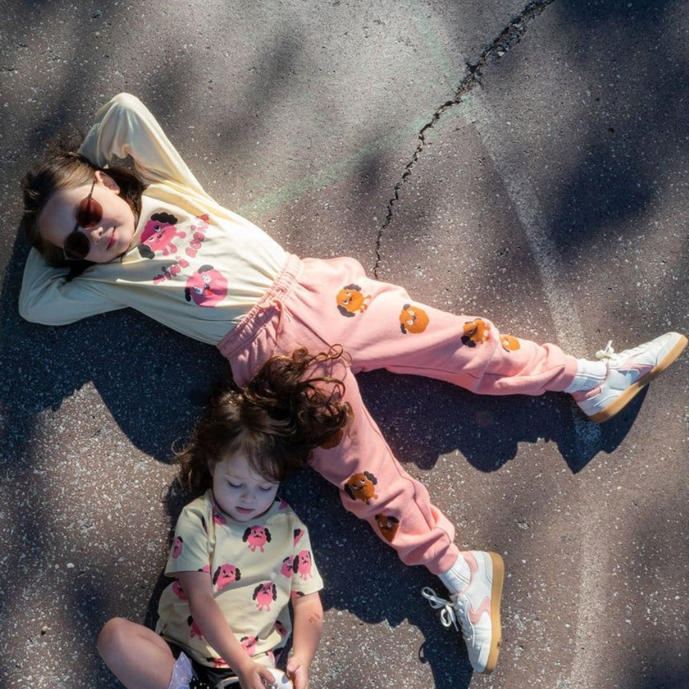 L'inconfondibile stampa del cagnolino fa sì che i pantaloni della tuta Mini Rodini si distinguano tra i vestiti di tutti i giorni e che i bambini li indossino volentieri.