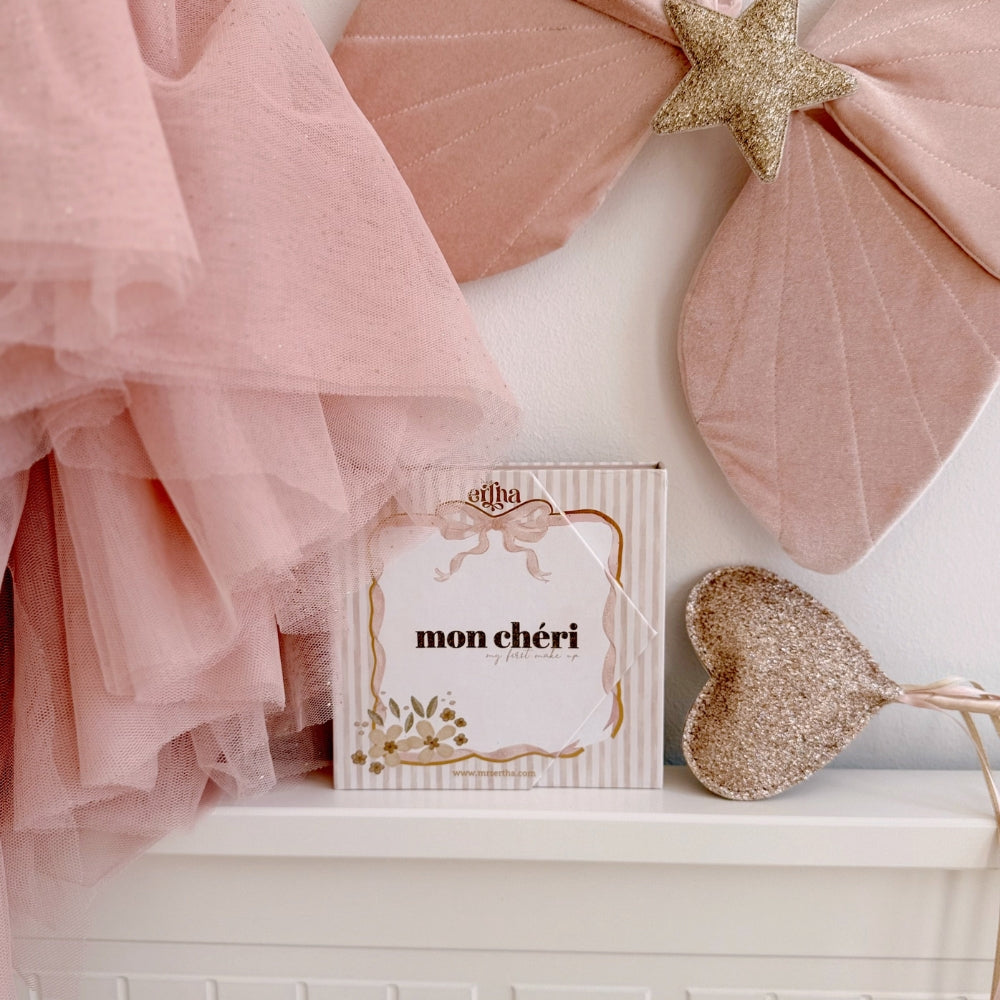 La tavolozza Mon Chérie di Mrs Ertha è un set di gioco unico che permette ai bambini di esplorare il mondo dei colori e dell'immaginazione in modo sicuro e creativo.