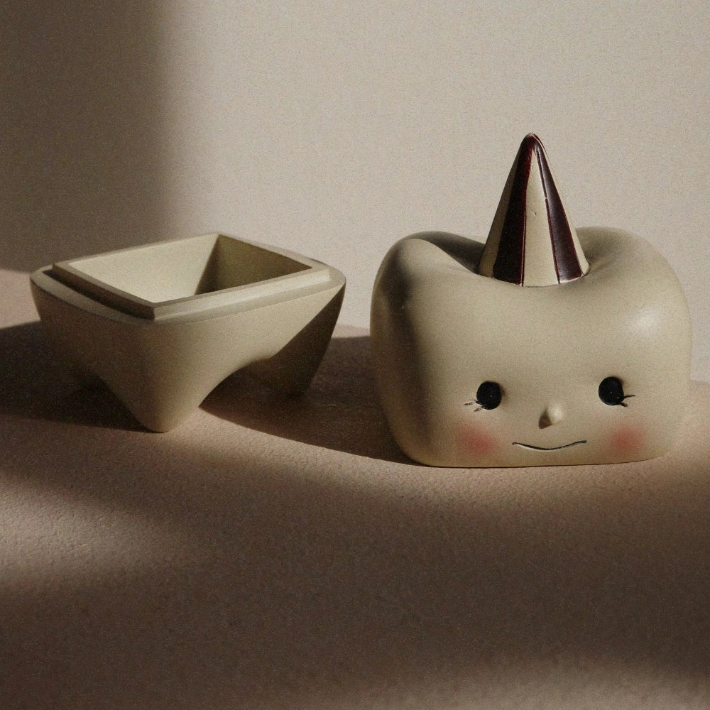 La scatola dei denti Konges Slojd ha la forma di una simpatica fatina dei denti, con tratti delicati e colori tenui, che la rendono una splendida decorazione per la stanza del bambino. Realizzata in materiale lapideo resistente, colpisce per la qualità e l'attenzione ai dettagli. Il marchio Konges Slojd è rinomato per i suoi prodotti che combinano il minimalismo scandinavo con il calore e il fascino del mondo infantile.
