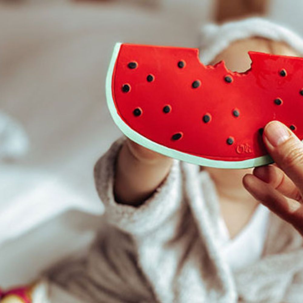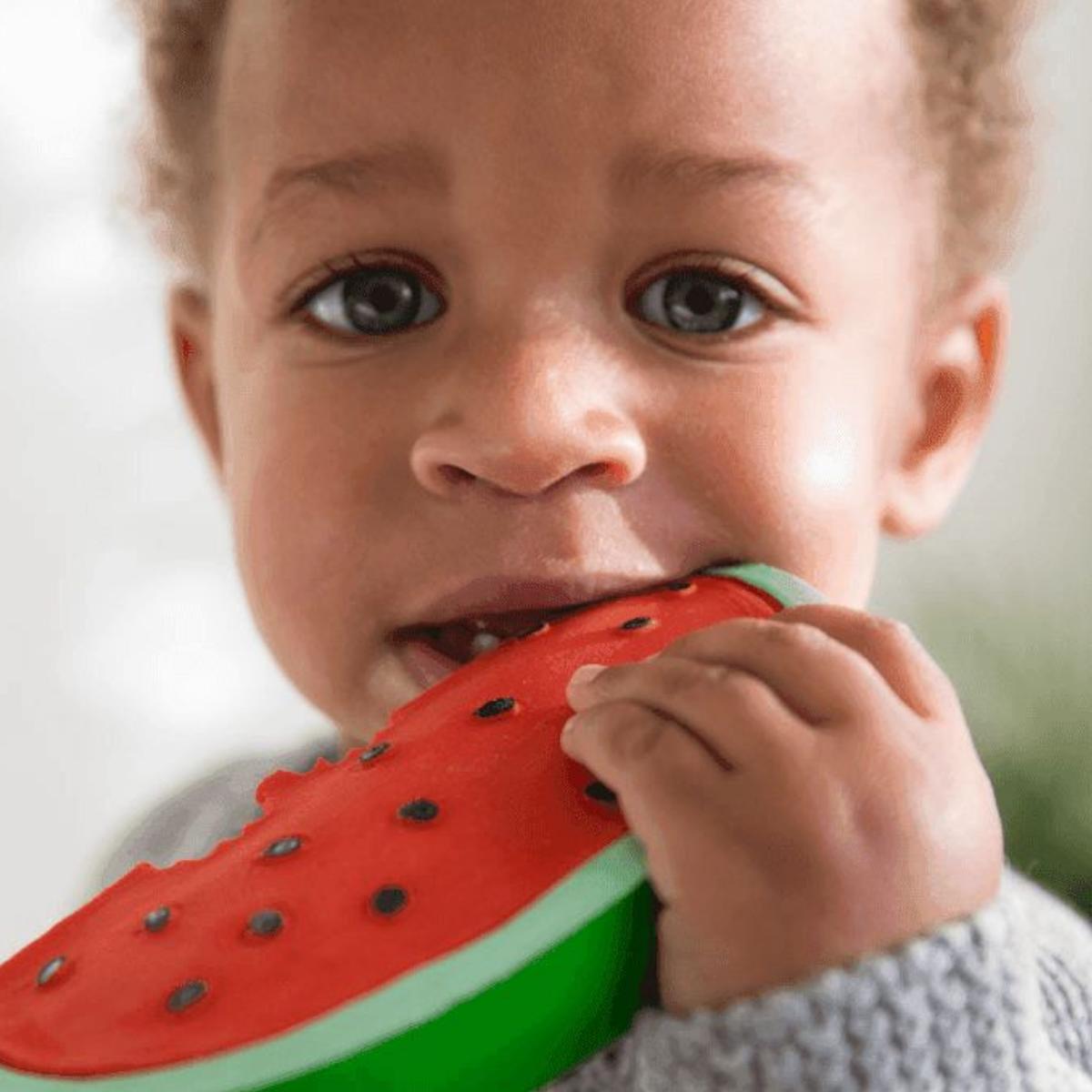 La dentiera per bambini Watermelon Wally di Oli&,Carol, realizzata in caucciù naturale, è una dentiera dal design perfetto che massaggia delicatamente le gengive del bambino per favorirne il corretto sviluppo.