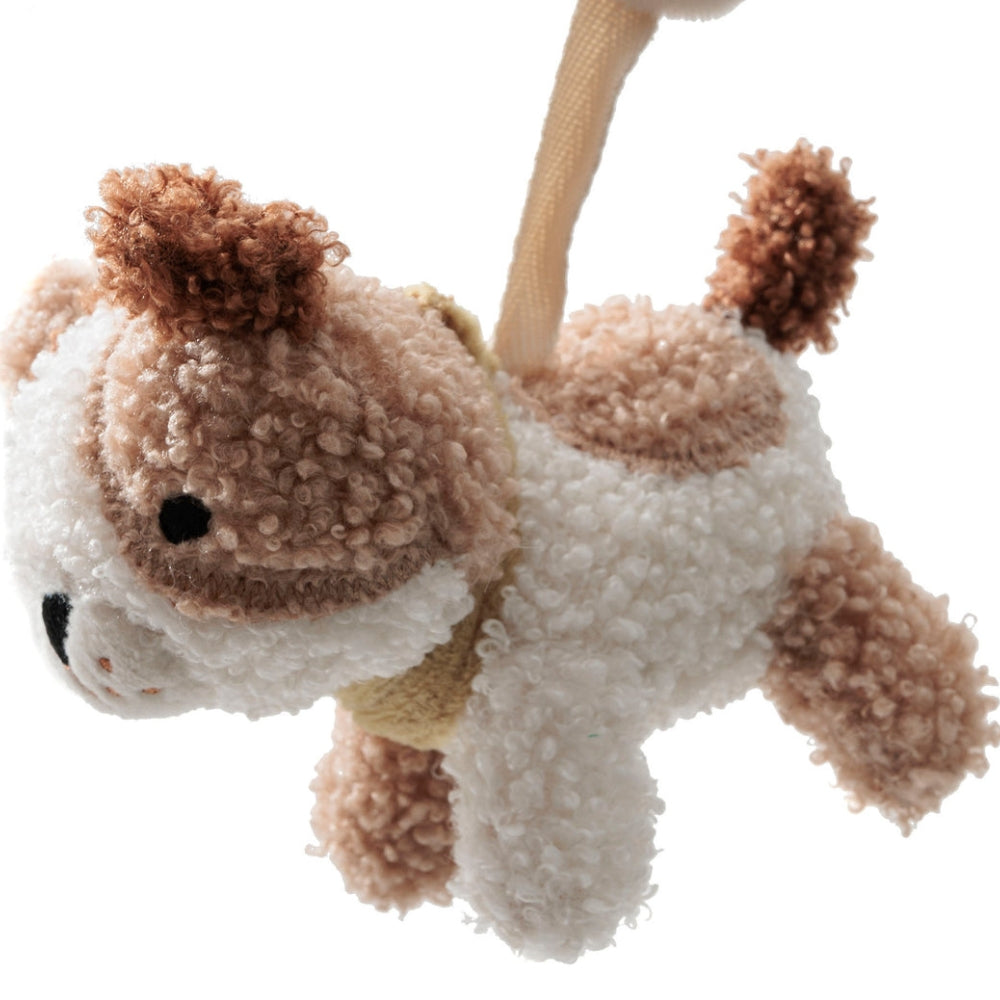 Il ciondolo per carrozzina attira l'attenzione del bambino con i suoi colori tenui e i simpatici personaggi animali.
