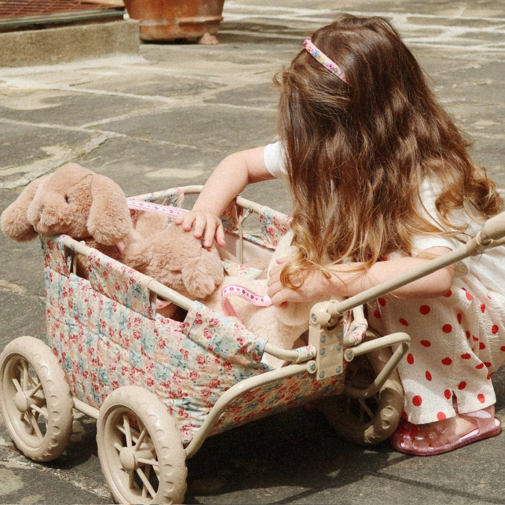Il trolley con orsacchiotto di Konges Slojd è il compagno perfetto per le passeggiate e i giochi di ruolo dei bambini.