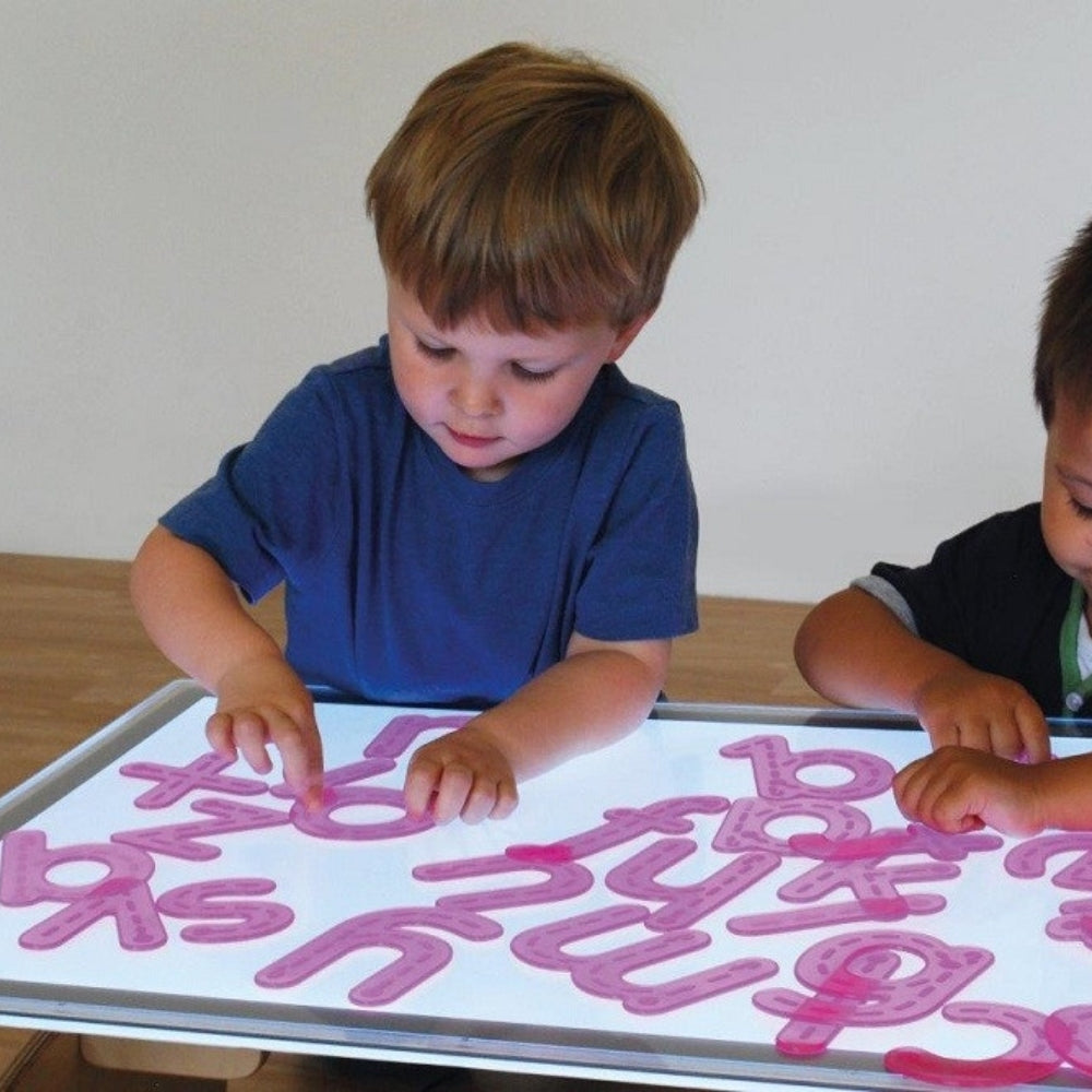 Ideali per l'uso in asili nido, scuole materne ed elementari, le lettere possono essere facilmente pulite dopo l'uso con acqua e sapone o messe in lavastoviglie.