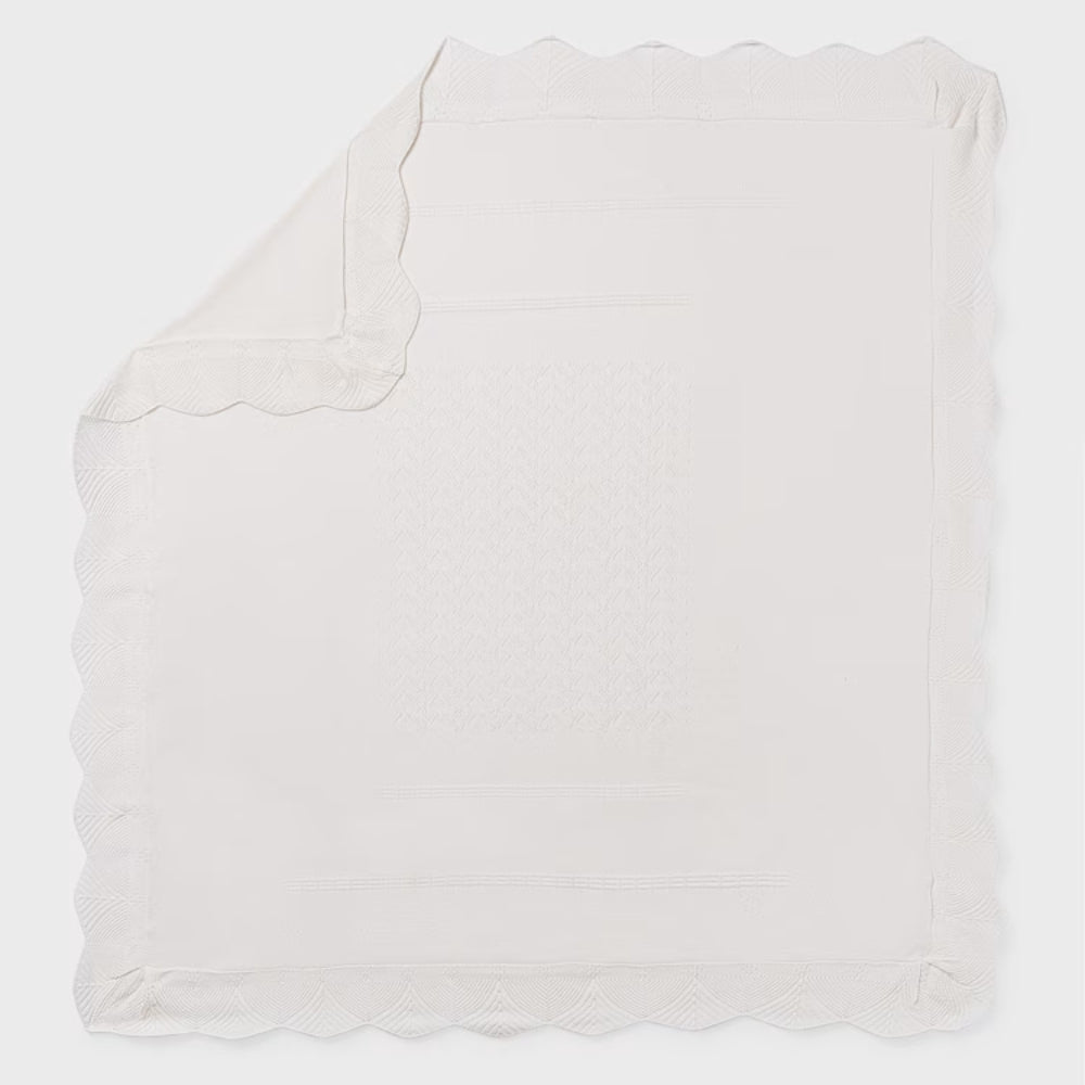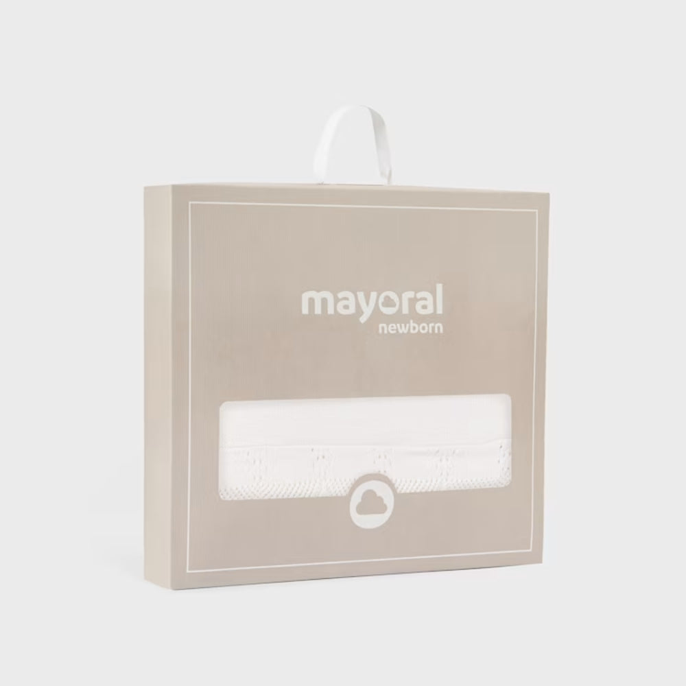 La coperta per neonati Mayoral è un morbido accessorio in tricot color crema, perfetto per essere indossato tutti i giorni.
