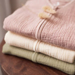 Realizzato in mussola morbida e traspirante, perfetta per l'estate.