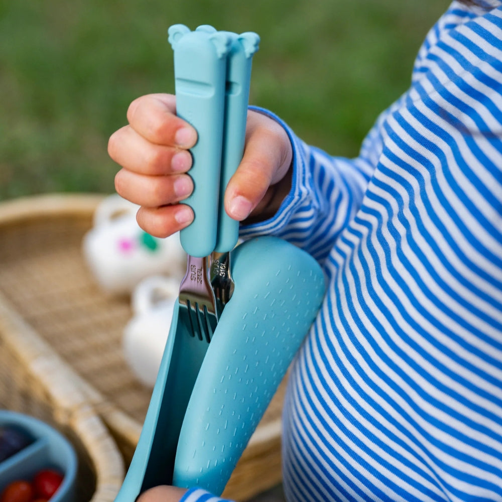 The Cotton Cloud Le posate per bambini nella custodia Zoe the Koala in verde mare