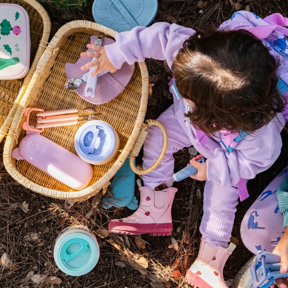 Cotton Cloud ha pensato anche all'aspetto pratico: è incluso un coperchio in silicone che consente di riporre le posate del bambino in modo igienico sia a casa che in viaggio.