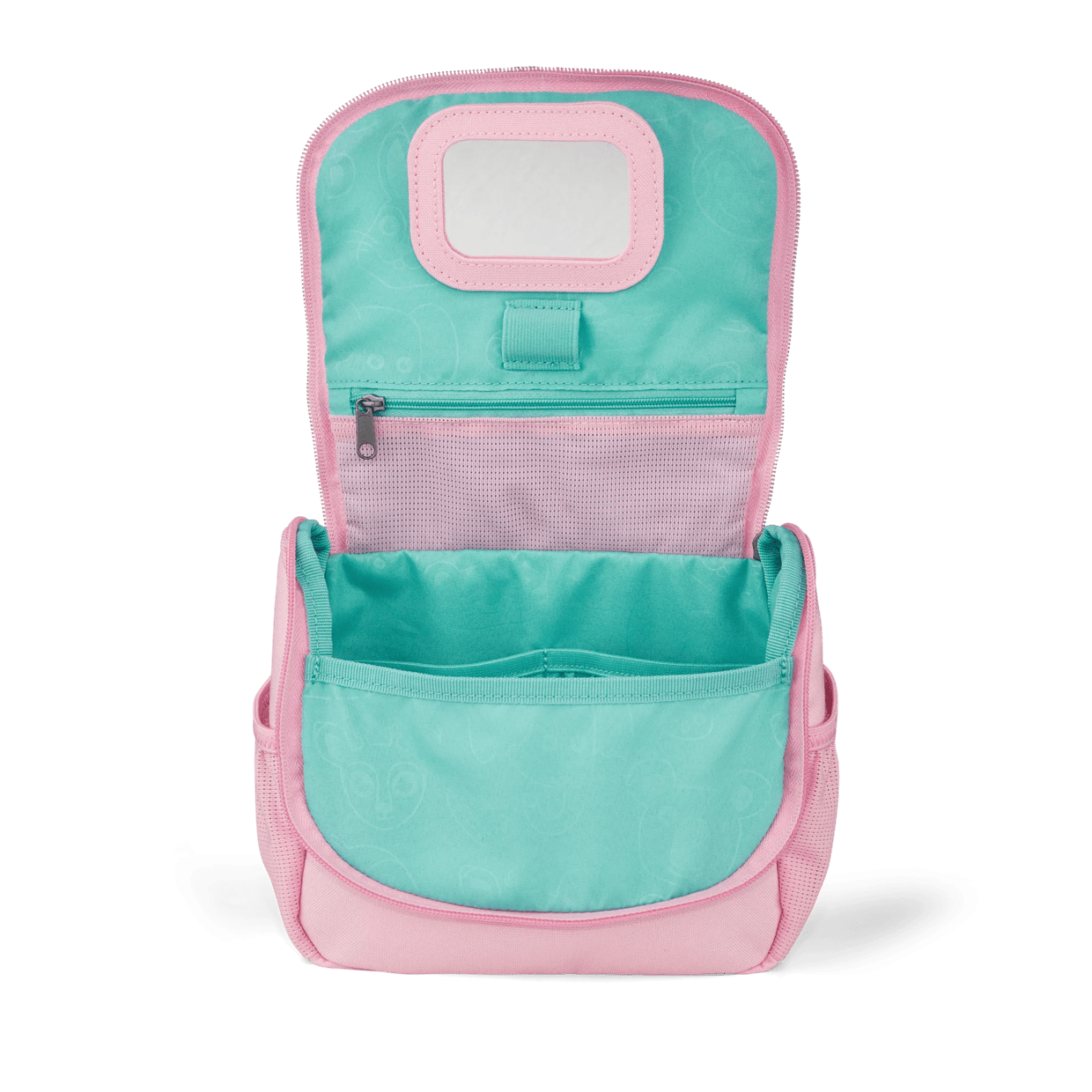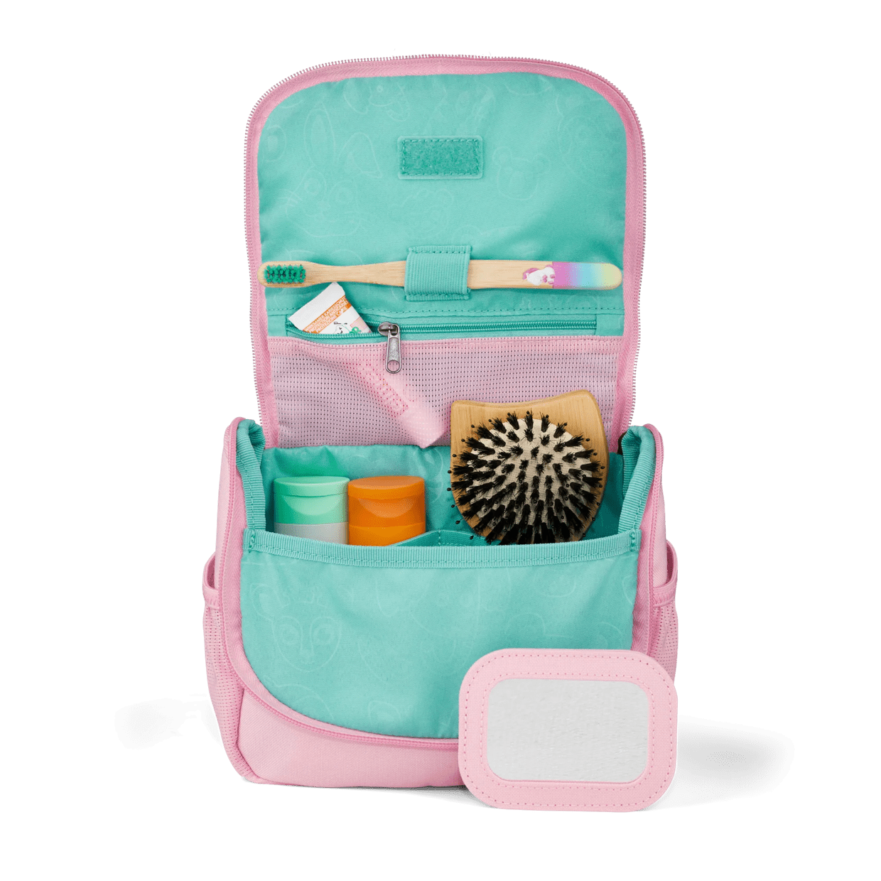 Le due tasche laterali in rete elastica e il funzionale passante per gli utensili rendono la borsa per il trucco dei bambini perfetta per le vacanze, l'asilo o le gite del fine settimana.