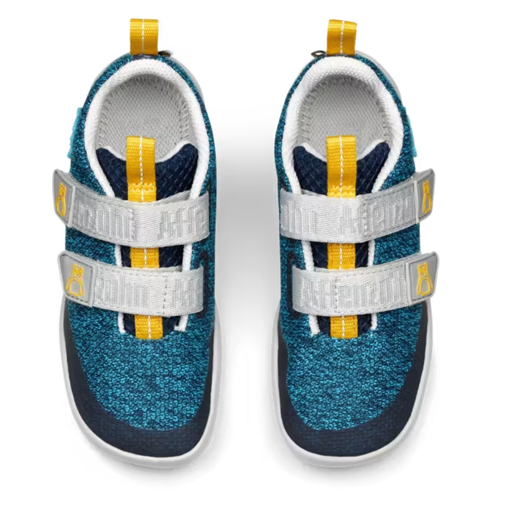 Il modello attira l'attenzione con il suo colore blu intenso, i cinturini in velcro luminosi a contrasto e i passanti gialli che rendono le scarpe facili da indossare.