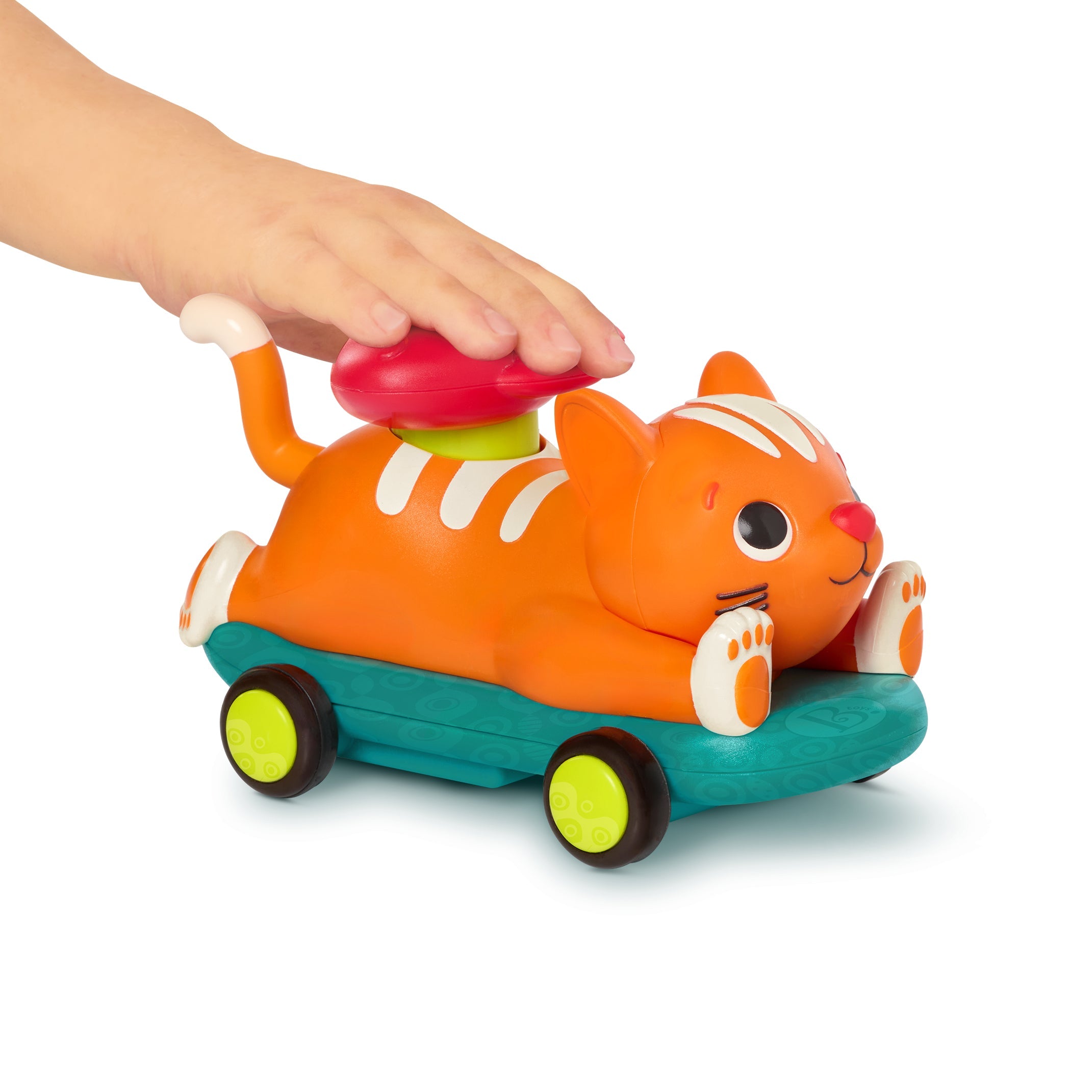 Le macchinine B.Toys PawMobiles Push&,Go sono un duo pieno di energia: basta premere il veicolo dall'alto e il cane e il gattino partono all'inseguimento, scodinzolando.