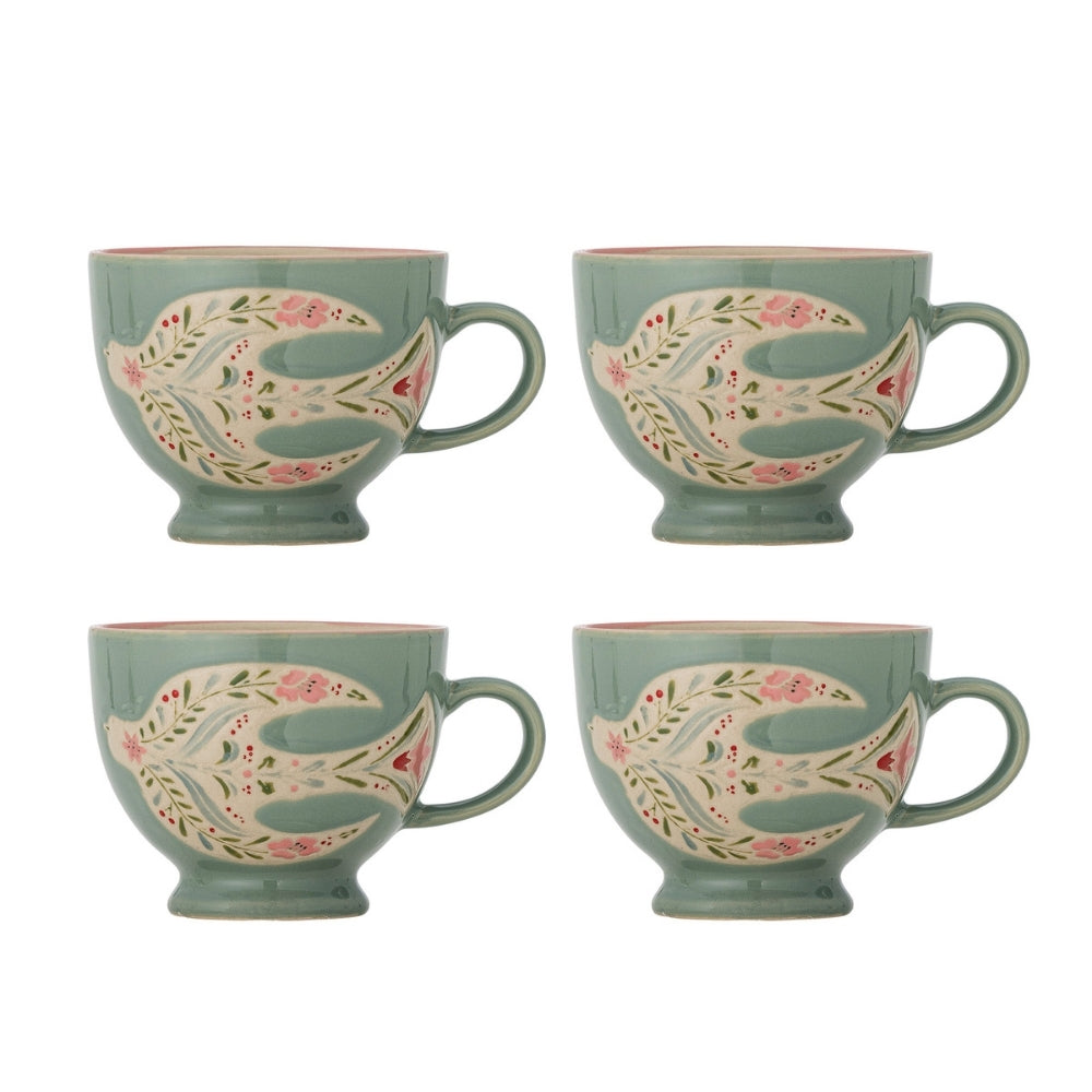 Bloomingville Set di 4 tazze in gres Rosalynde Green