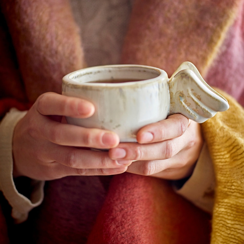 Il manico a forma di ala d'angelo le conferisce un fascino unico e i colori tenui e naturali la rendono adatta a molti interni e stili.