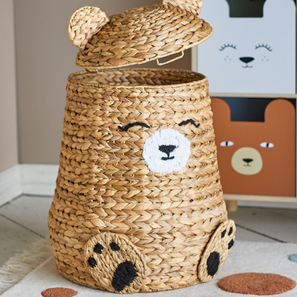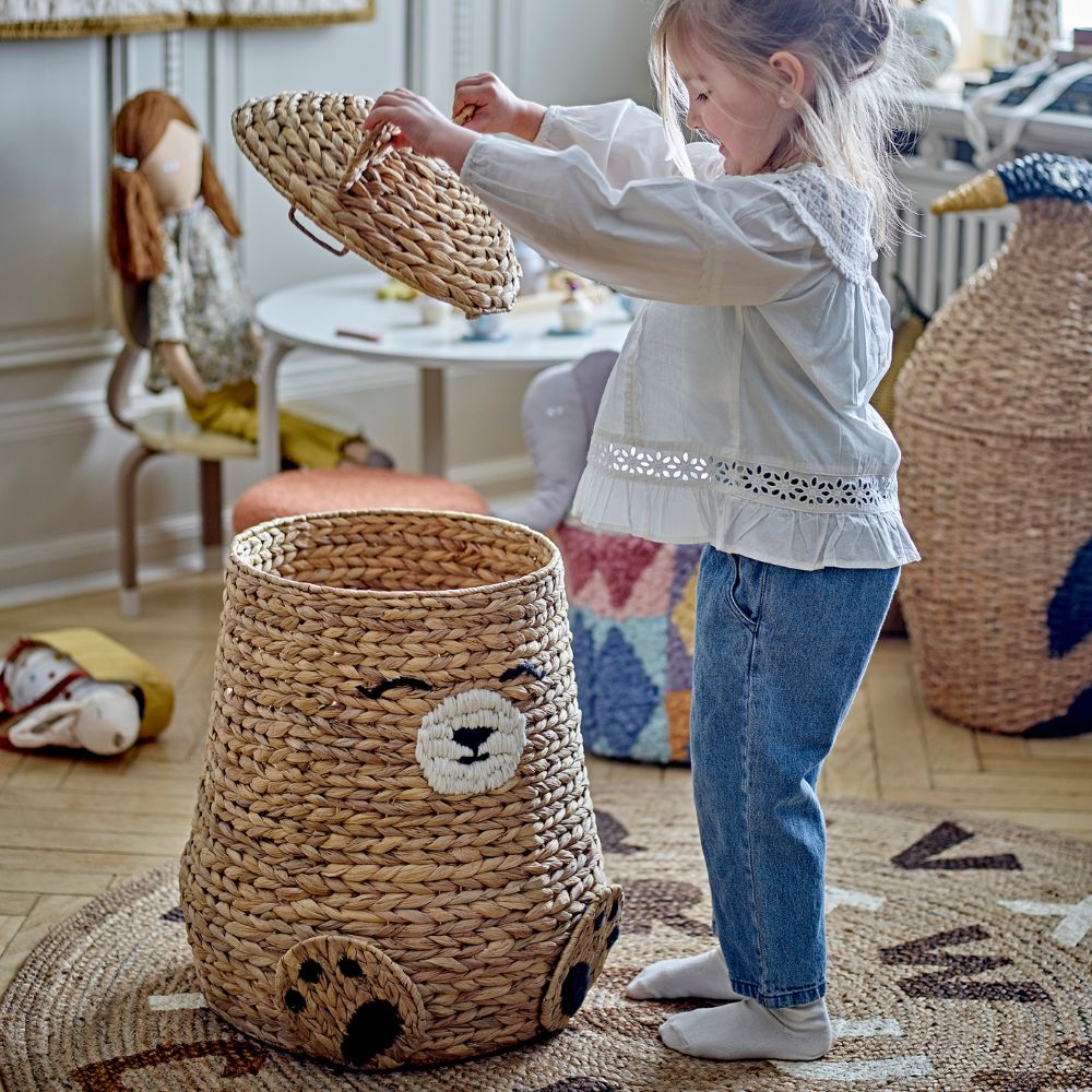 A forma di grande orsacchiotto, il cesto Bloomingville organizza perfettamente i giocattoli e dà un tocco accogliente alla stanza dei bambini.