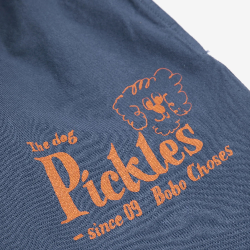 Il colore blu navy, abbinato all'inconfondibile stampa "Pickles the Dog", conferisce al look complessivo il tocco artistico e unico per cui il marchio Bobo Choses è noto.