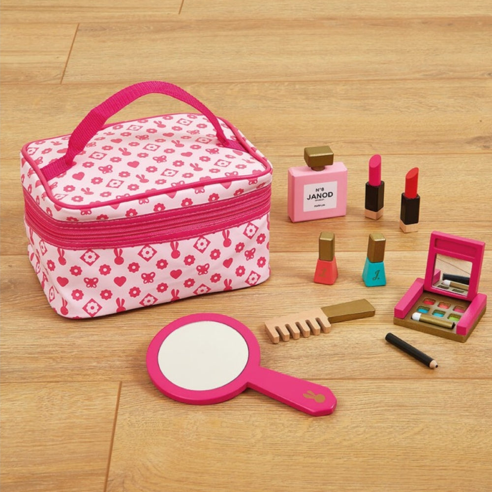 Janod Astuccio cosmetico per bambini - per una piccola signora con accessori per il trucco è una garanzia di grande divertimento per una piccola principessa. Sono una fedele riproduzione delle loro controparti "adulte", ma le loro dimensioni sono adattate alle mani dei bambini.