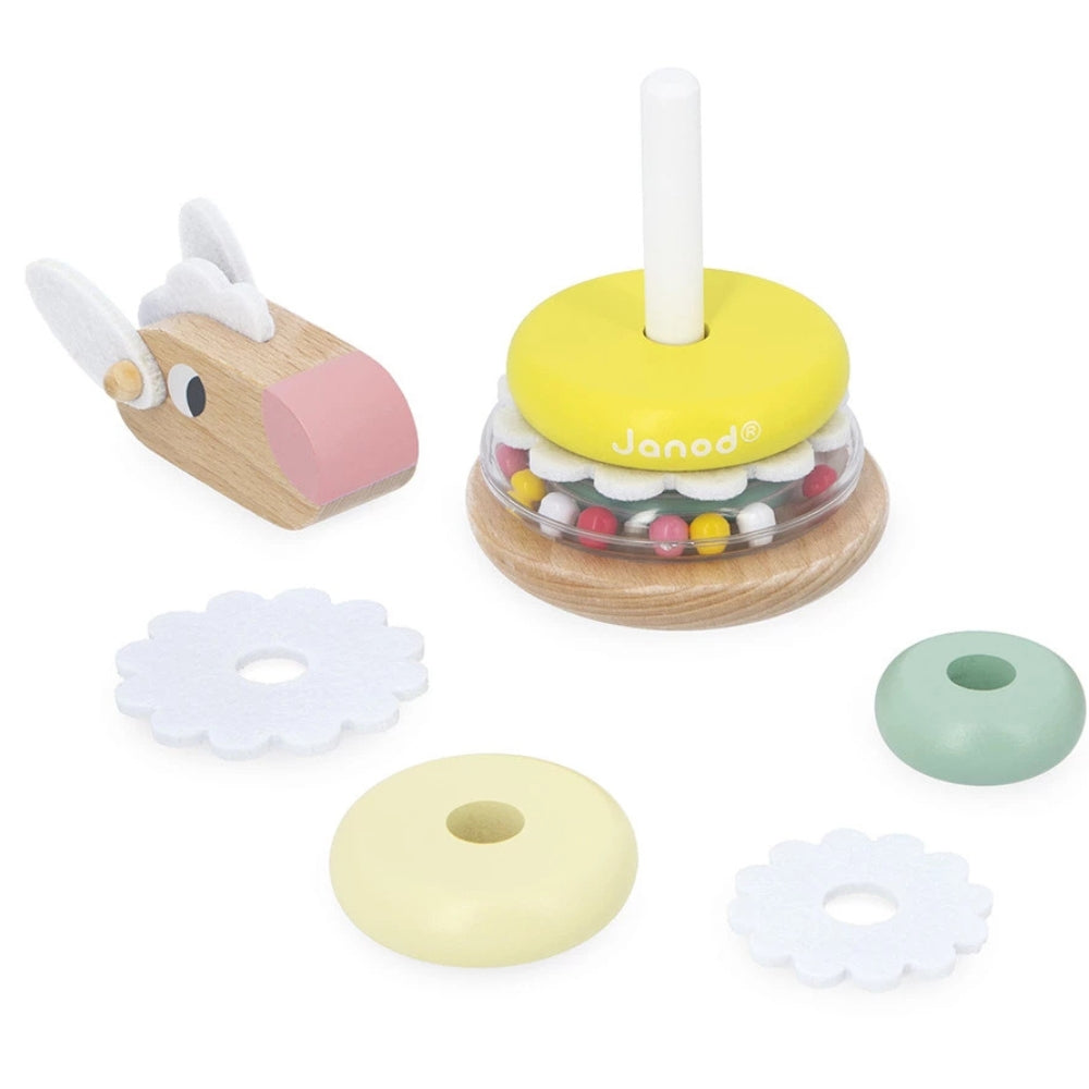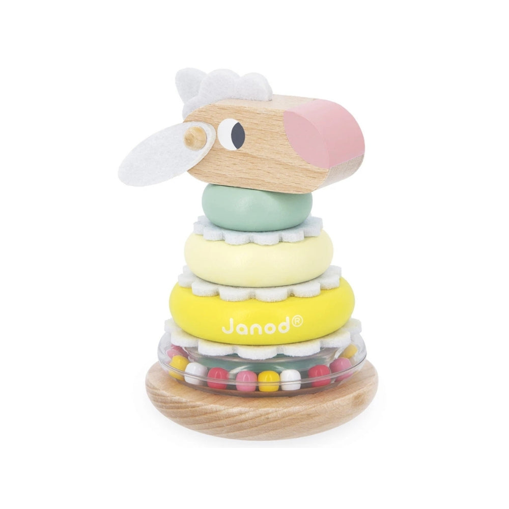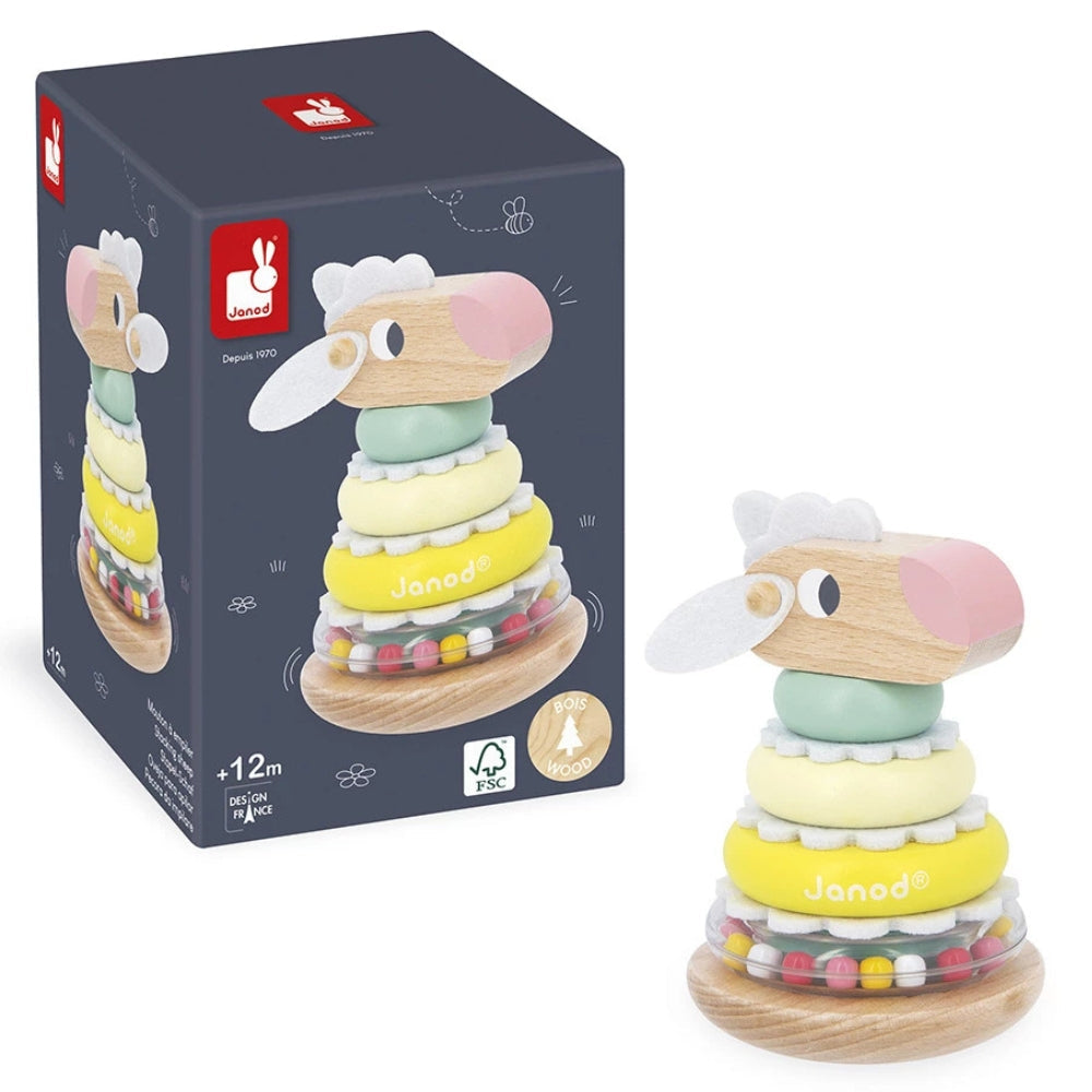 La piramide di legno a forma di pecora di Janod è un adorabile giocattolo per lo sviluppo che combina legno, feltro e dettagli colorati.
