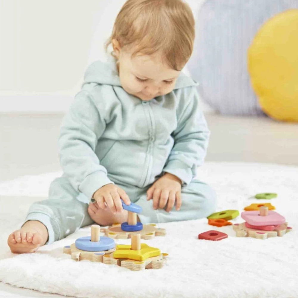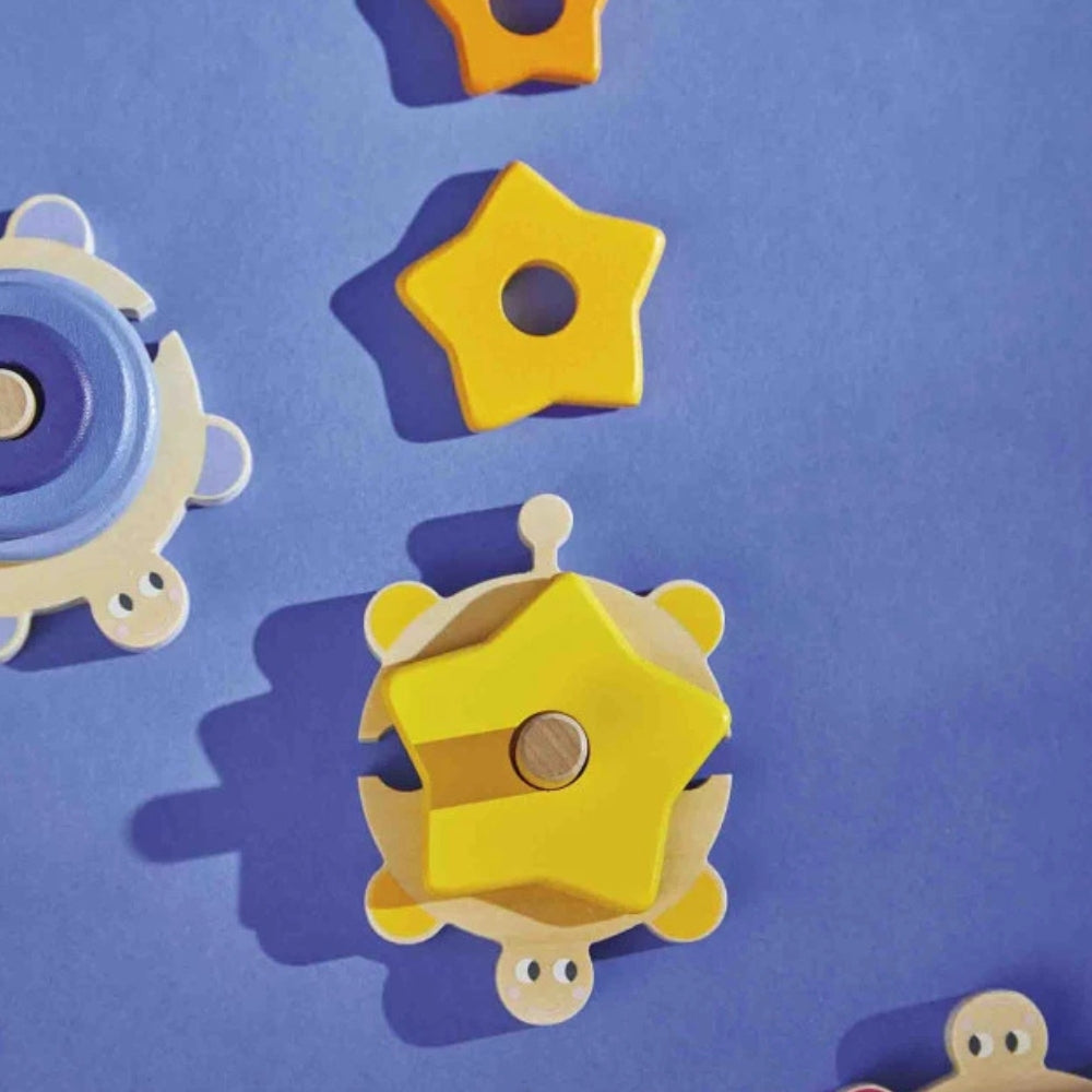 A ogni tartaruga vengono assegnati 3 pezzi da impilare, in modo che il bambino impari a ordinare e abbinare in modo divertente e intuitivo.
