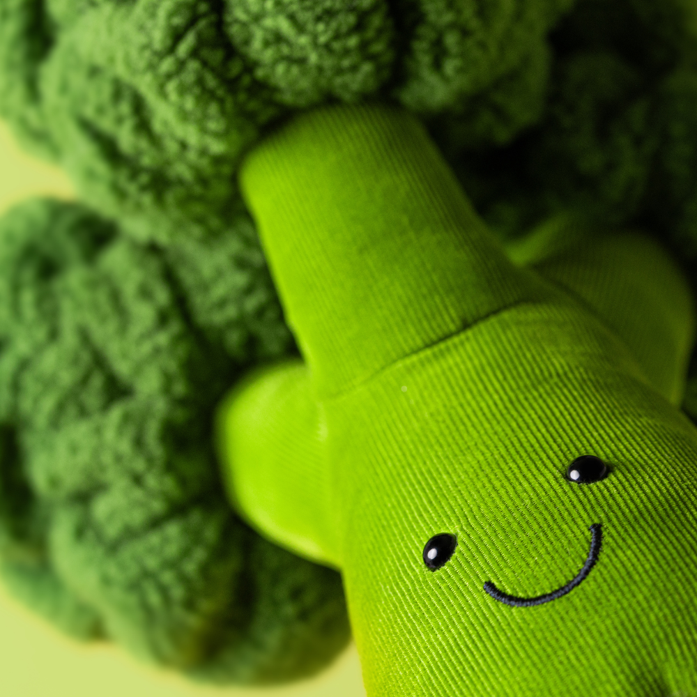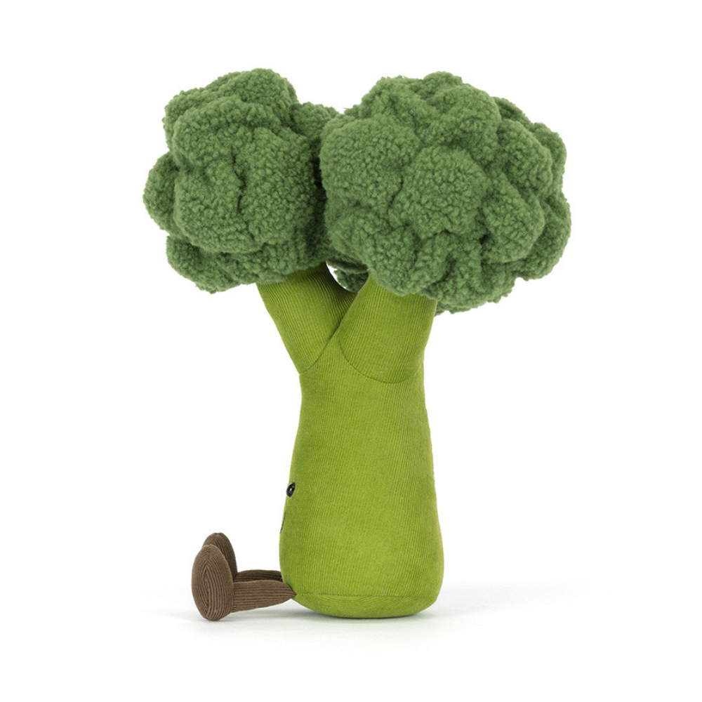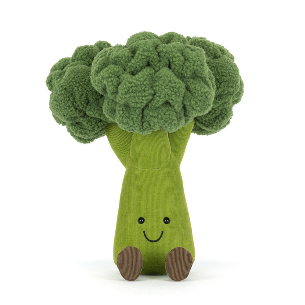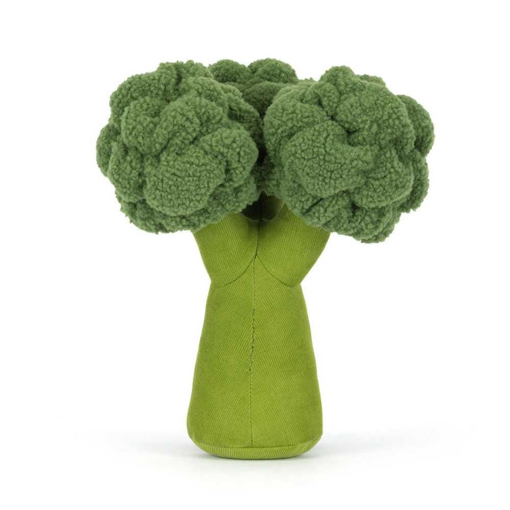 Come è tipico di Jellycat, i dettagli e la morbidezza sono al top: i materiali tattili, i robusti "grani" all'interno e le finiture accurate fanno sì che Broccoli stia comodamente su una mensola o tra le braccia dei bambini.