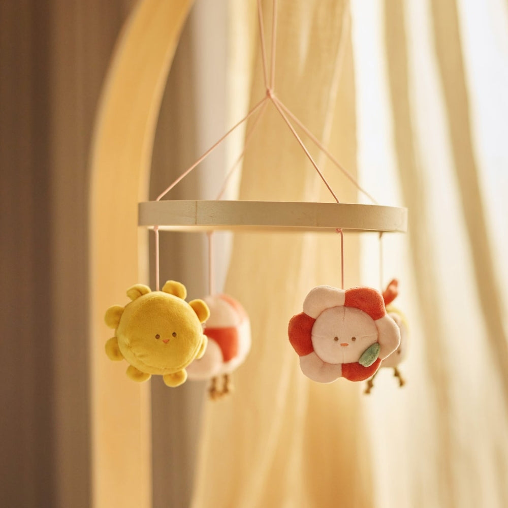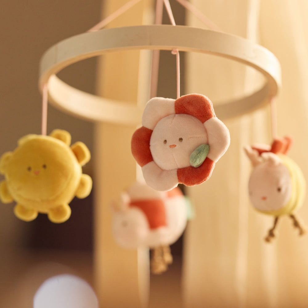 La giostrina per culla Jollein della collezione Pretty Picnic è un accessorio affascinante che completa splendidamente l'angolo del bambino e supporta i rituali quotidiani del sonno.