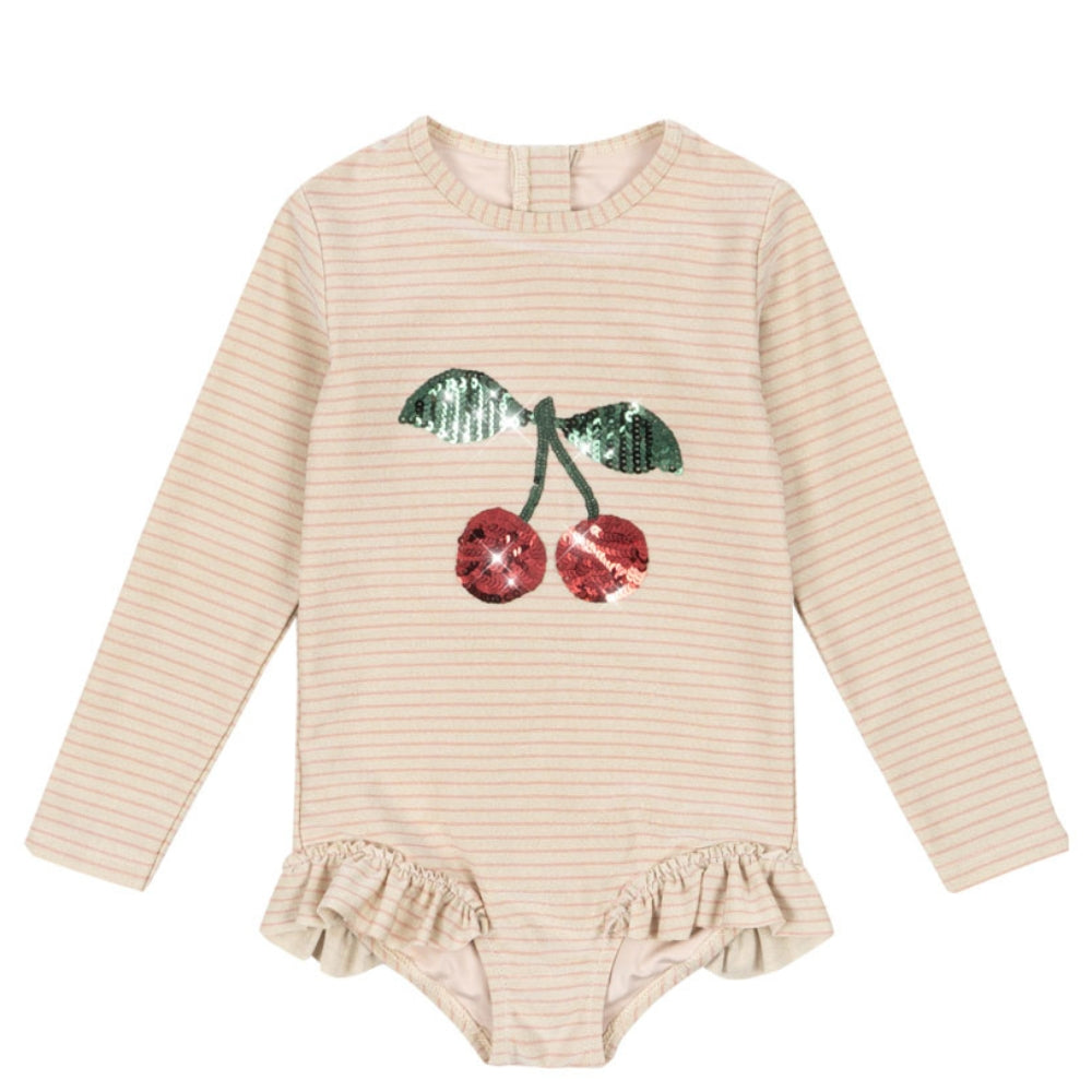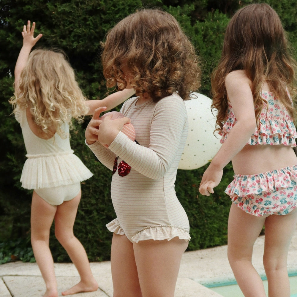 Questo costume da bagno per bambina di Konges Slojd combina funzionalità e stile unico e femminile.