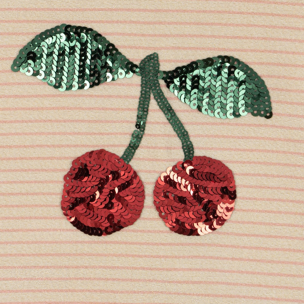 Il costume da bagno da bambina presenta un'applicazione decorativa di paillettes sul davanti e delicati volant sulle gambe per un tocco in più.
