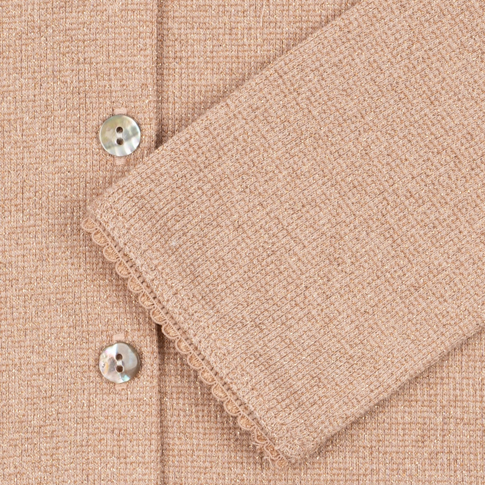 Il taglio classico con scollo rotondo, delicate nervature ed eleganti bottoni in madreperla rende il maglione per bambine un abbinamento perfetto sia per gli outfit di tutti i giorni che per quelli più eleganti.