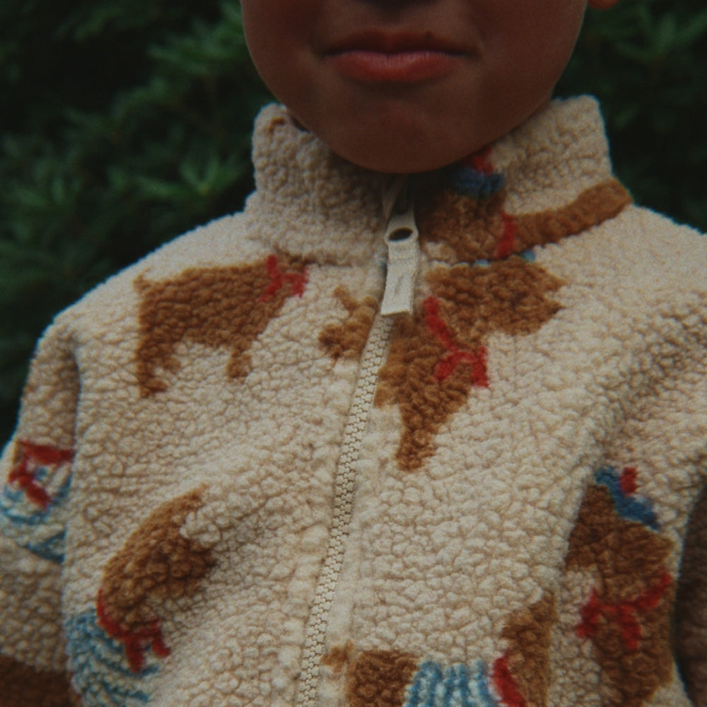 Konges Slojd ha a cuore l'ambiente e la sicurezza dei più piccoli: il pile per bambini è realizzato in poliestere riciclato certificato e conforme agli standard GRS.