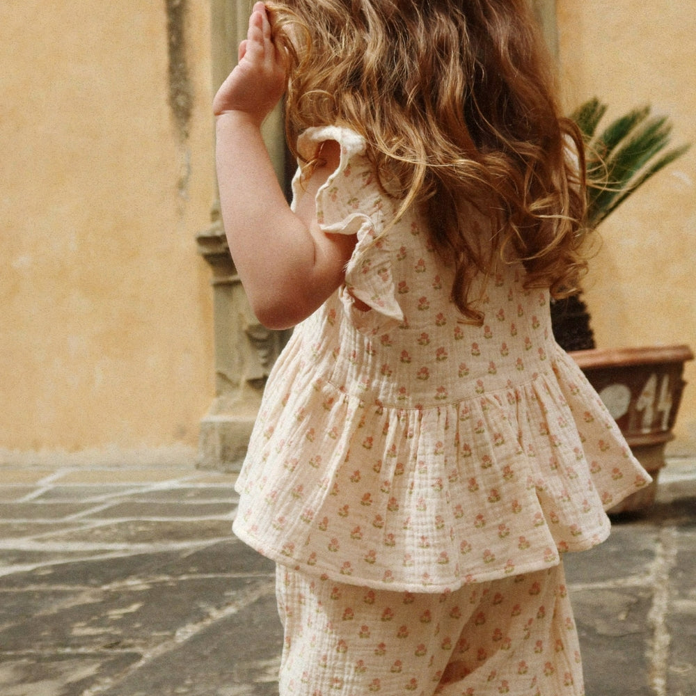 Konges Slojd Top per bambina con volant Coco Carta Rosa