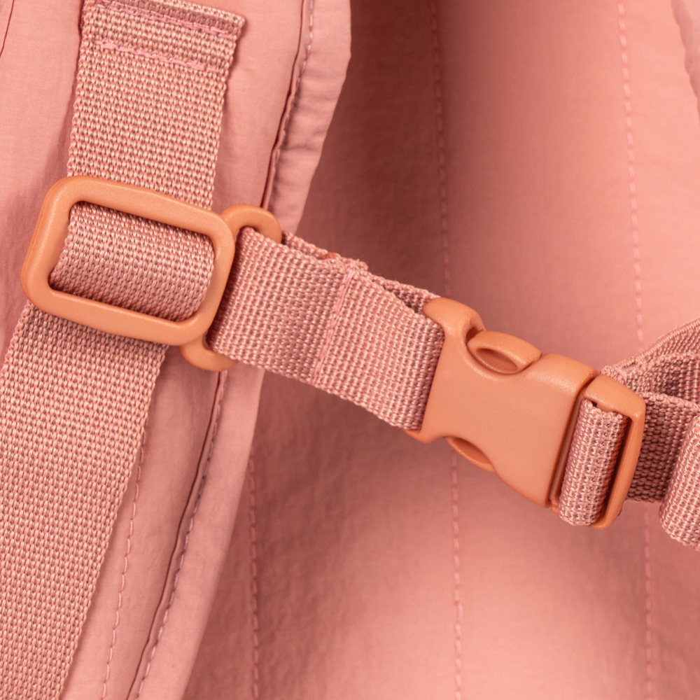 Le imbracature regolabili e la cinghia di stabilizzazione aiutano a mantenere il comfort e il corretto posizionamento sulle spalle del bambino.