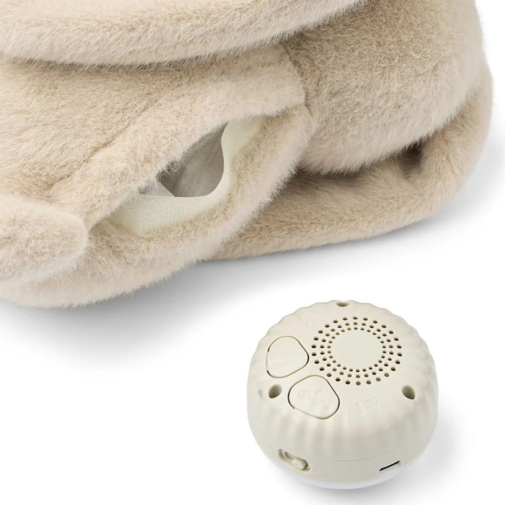 Il coniglietto ronzante di Liewood riproduce otto suoni calmanti, come il rumore bianco e rosa, il canto degli uccelli o il suono delle onde, in modo da adattarsi facilmente alle esigenze del bambino.