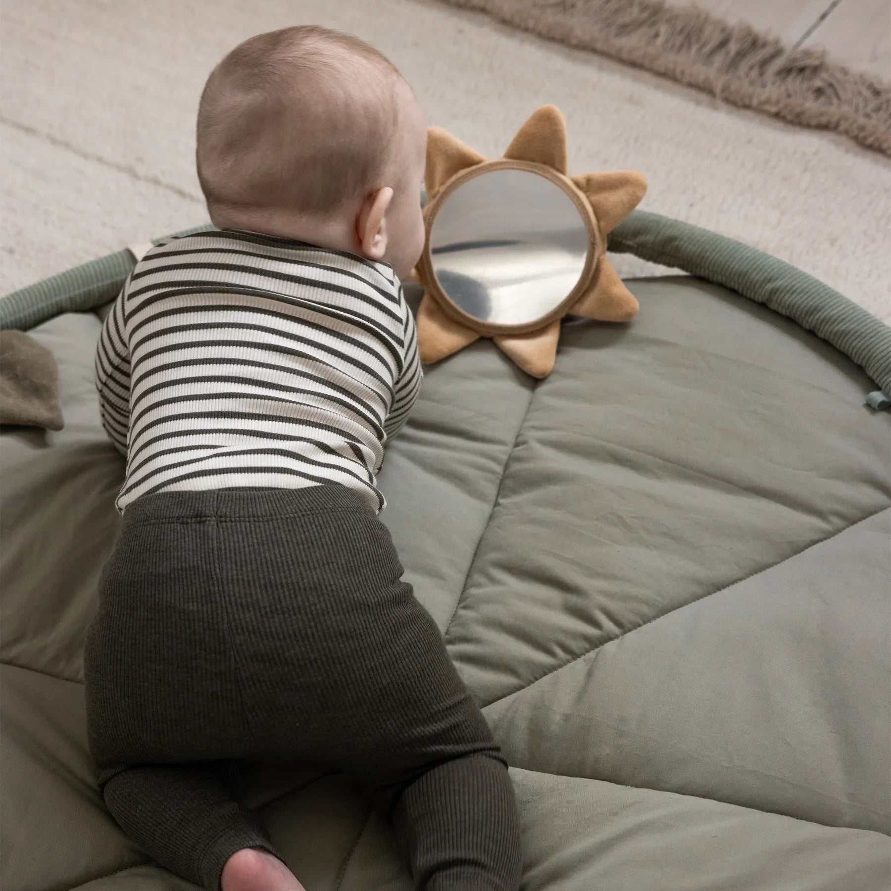 Il tappeto educativo offre al bambino un luogo sicuro e accogliente per esplorare il mondo sia sulla schiena che sul pancino.