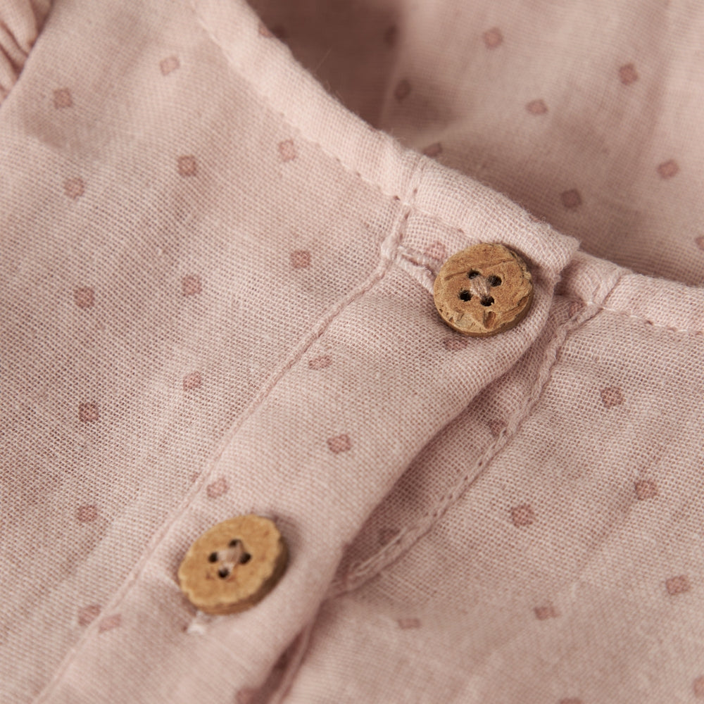 Realizzato in un tessuto morbido e arioso in una tenue tonalità di rosa, è perfetto sia per l'abbigliamento quotidiano che per le occasioni speciali.