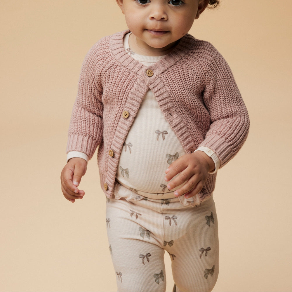 Il simpatico motivo a nastri e il colore beige neutro rendono il body perfetto sia per i bambini che per le bambine.