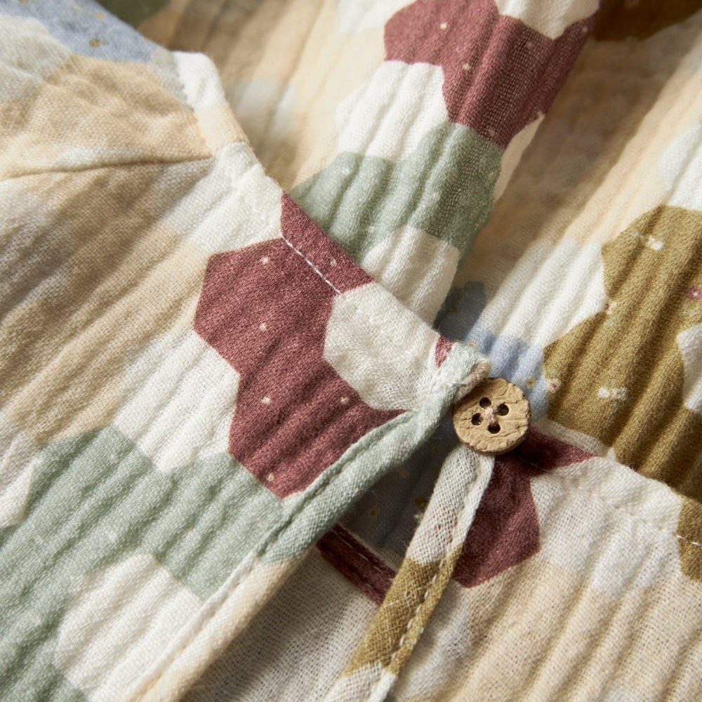 L'abito da bambina Lil' Atelier è stato cucito in 100% cotone biologico, che garantisce traspirabilità e sicurezza anche per le pelli più sensibili.