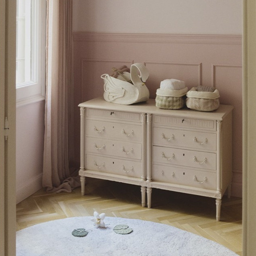 Con la sua forma morbida e i suoi colori tenui, il Cestino si inserisce perfettamente in ambienti pieni di calore e fantasia.